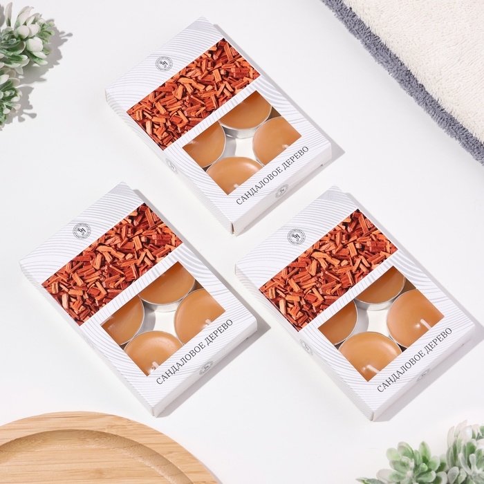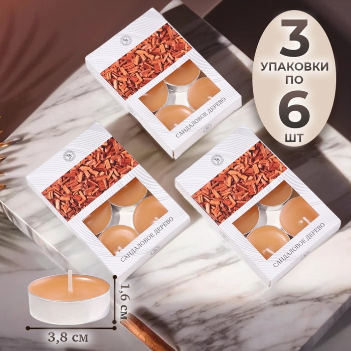 Свечи чайные ароматизированные "Сандаловое дерево" в подарочных коробках, 18 шт 1050013