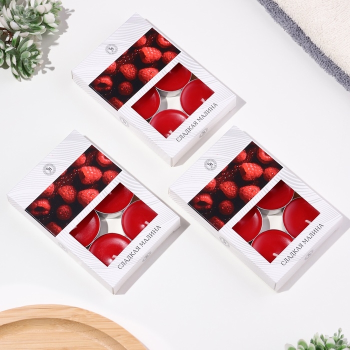 Свечи чайные ароматизированные "Сладкая малина" в подарочных коробках, 18 шт