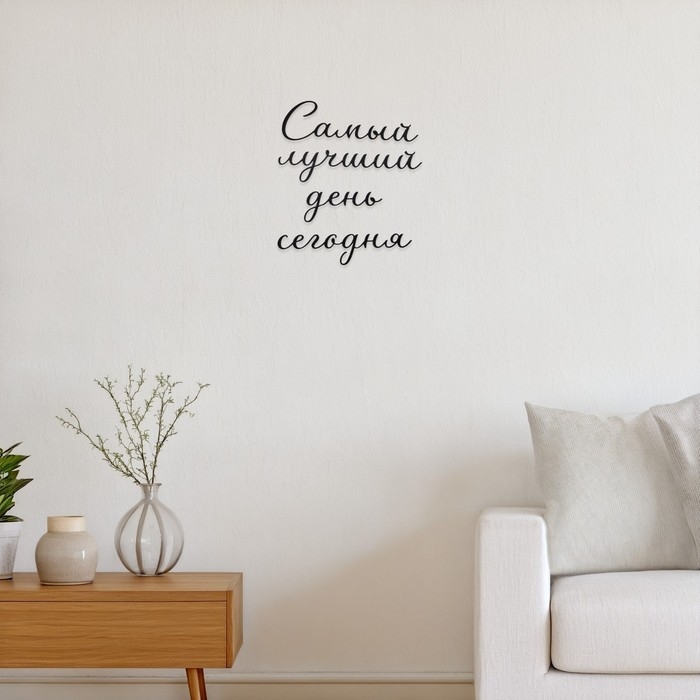 Панно настенное - это прекрасный способ добавить в интерьер вашего дома неповторимый декор. Это модульная картина, которая может использоваться как настенная декорация для спальни, гостиной или кухни. Оригинальный дизайн декорации придаст изюминку вашей комнате, панно в виде надписи "Самый лучший день сегодня" обязательно будет мотивировать вас на свершение новых дел, будет напоминать о важности жить здесь и сейчас, не думая о том, что будет завтра. Модули, выполненные из МДФ (древесноволокнистой плиты), можно соединять между собой, чтобы создавать уникальные и красивые настенные декорации. Использование древесных модулей в декоре стен позволяет создать атмосферу уюта в вашем доме. Подвесная декорация подойдет для дома в любом стиле: будь то скандинавский, лофт или эко. В зависимости от поверхности стен для крепления декора можно использовать двухсторонний скотч, жидкие гвозди или горячий клей.