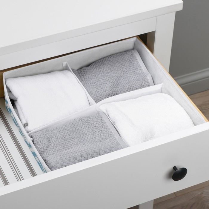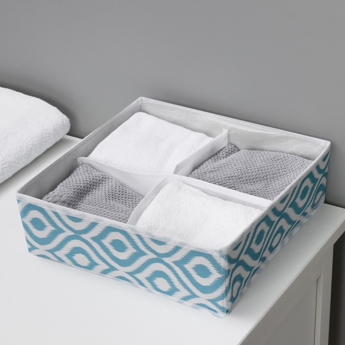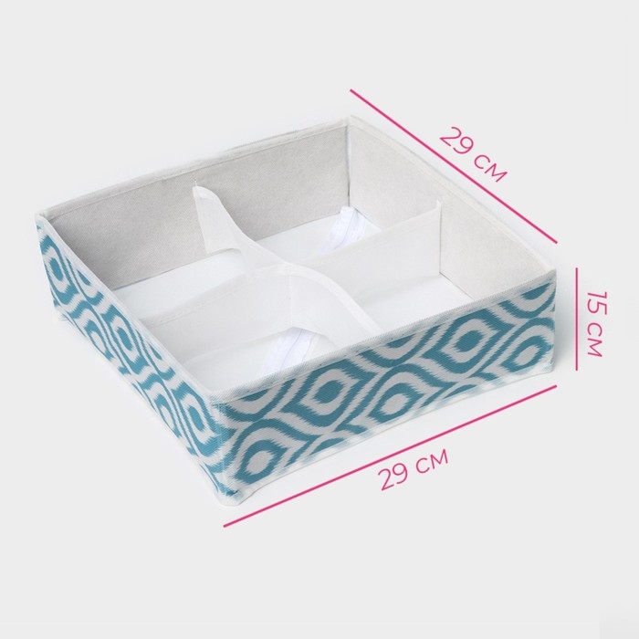 Органайзер для хранения белья Доляна «Лагуна», 4 ячейки, 29×29×10 см, цвет бирюзовый