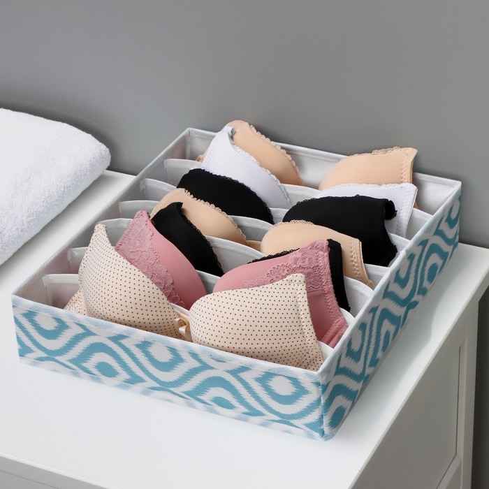 Органайзер для хранения белья Доляна «Лагуна», 7 ячеек, 34×30×8 см, цвет бирюзовый