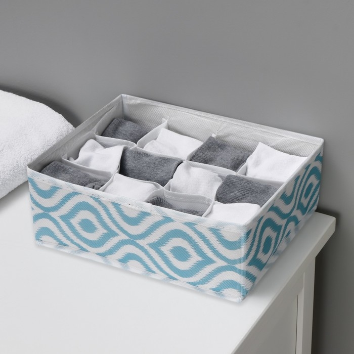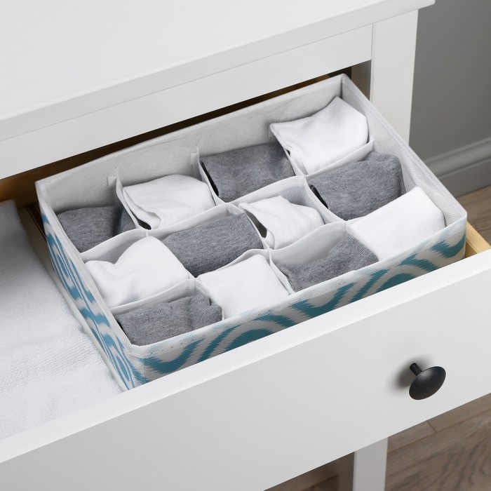 Органайзер для хранения белья Доляна «Лагуна», 12 ячеек, 27×20×10 см, цвет бирюзовый