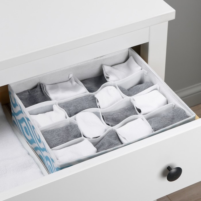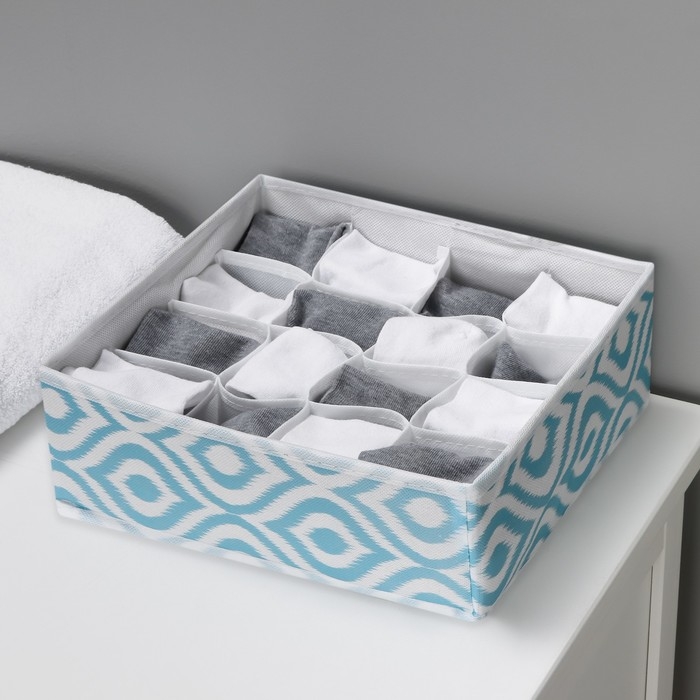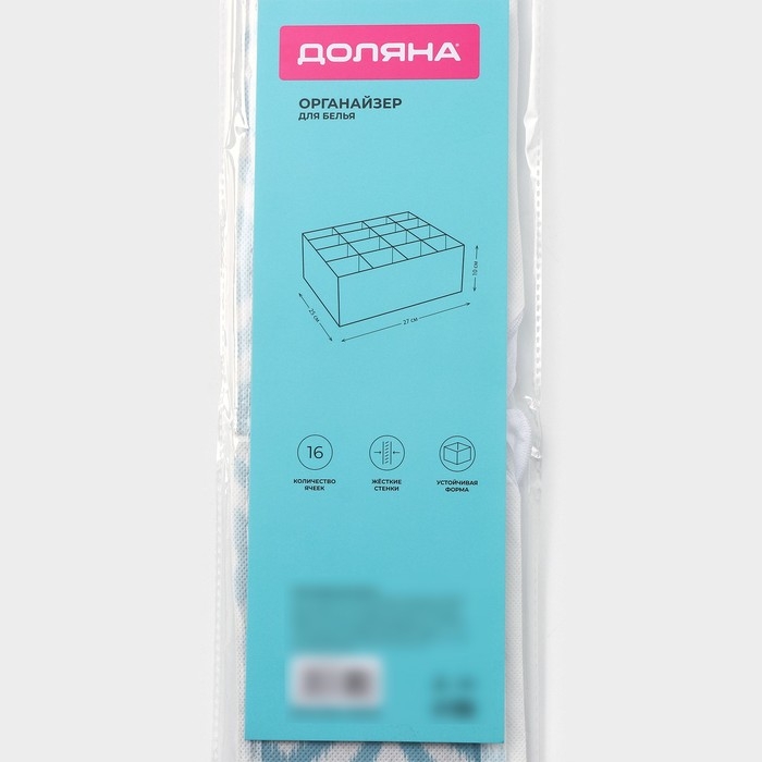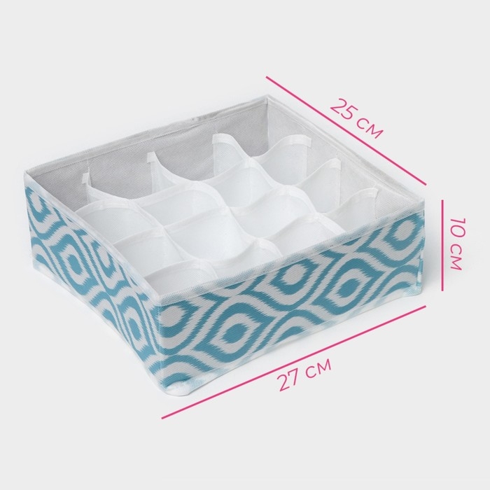 Органайзер для хранения белья Доляна «Лагуна», 16 ячеек, 27×25×10 см, цвет бирюзовый