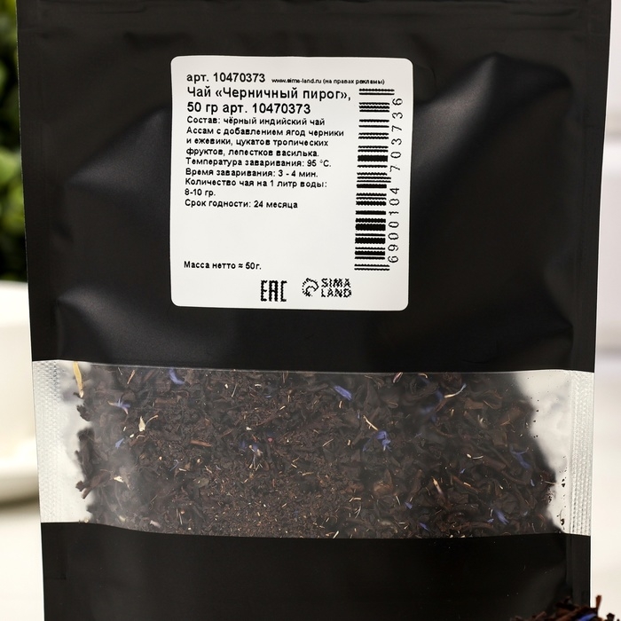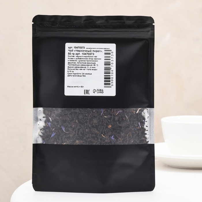 Состав: чёрный индийский чай Ассам, ягоды черники, ежевики, цукаты тропических фруктов, лепестки василька.