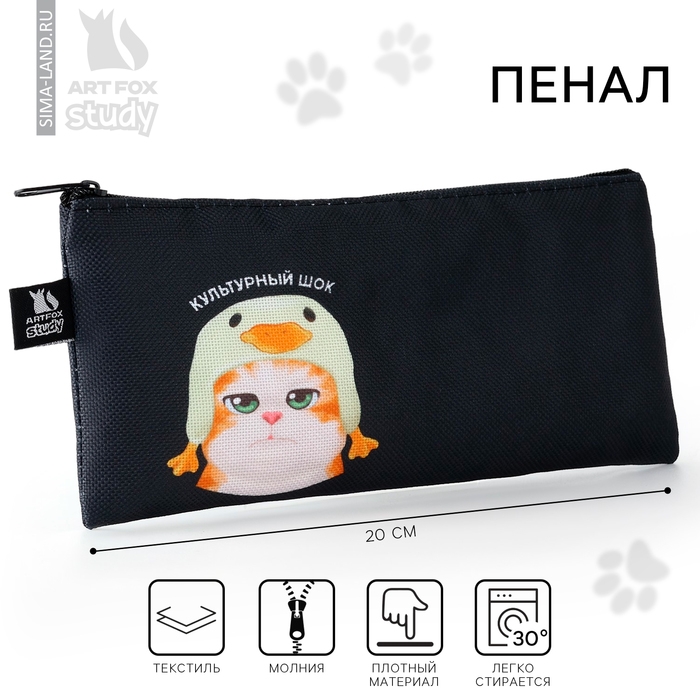 Пенал школьный текстильный «1 сентября: Кот в шоке», 20 х 8 см