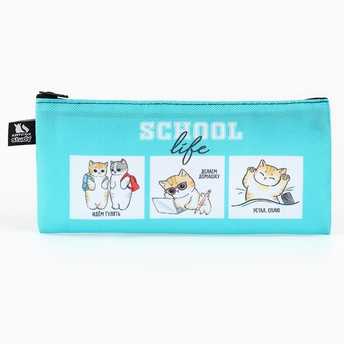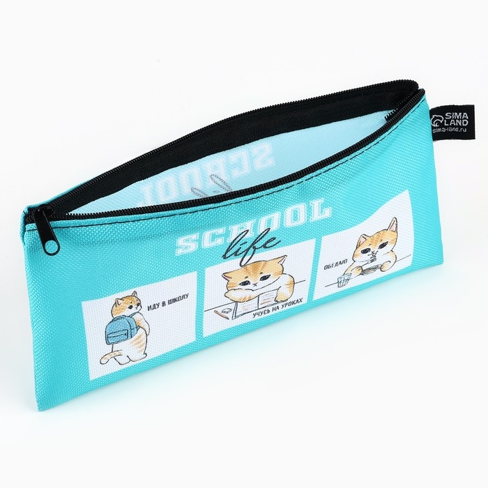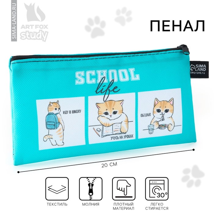 Пенал школьный текстильный «1 сентября: Котик в школе», 20 х 8 см