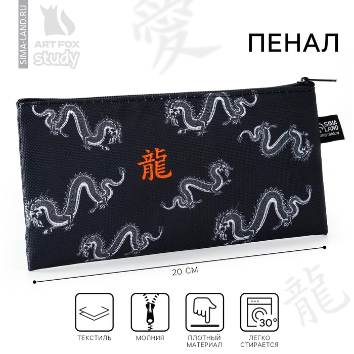 Пенал школьный текстильный «1 сентября: Дракон», 20 х 8 см