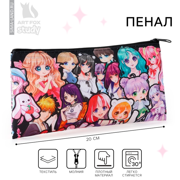 Пенал школьный текстильный «1 сентября: Стикер аниме», 20 х 8 см
