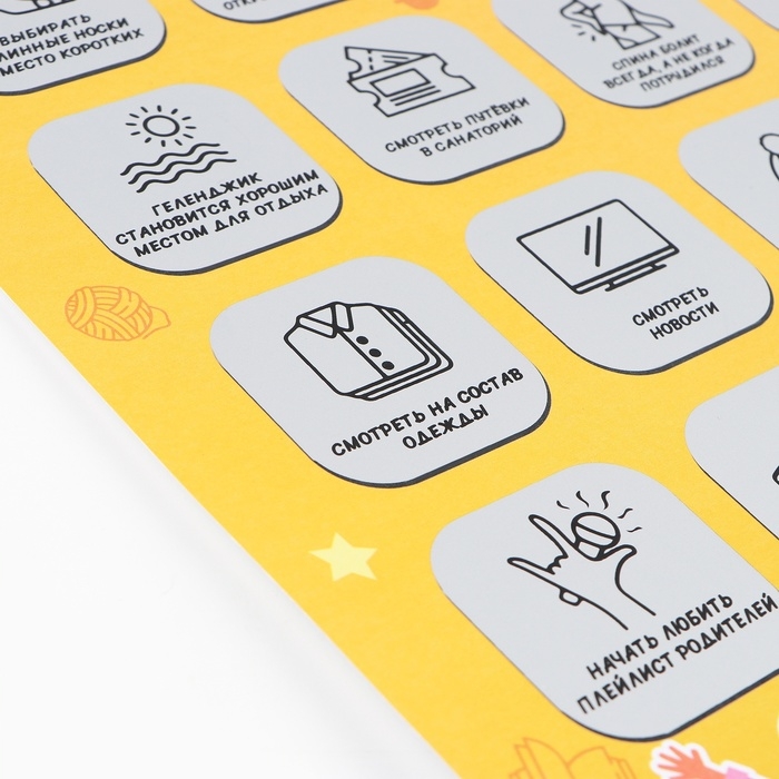 Каждый пункт чек-листа сопровождается скретч слоем, который вы стираете, если пункт применим к вам. Подсчитайте свои баллы и узнайте, насколько "молоды" вы остаётесь в душе!