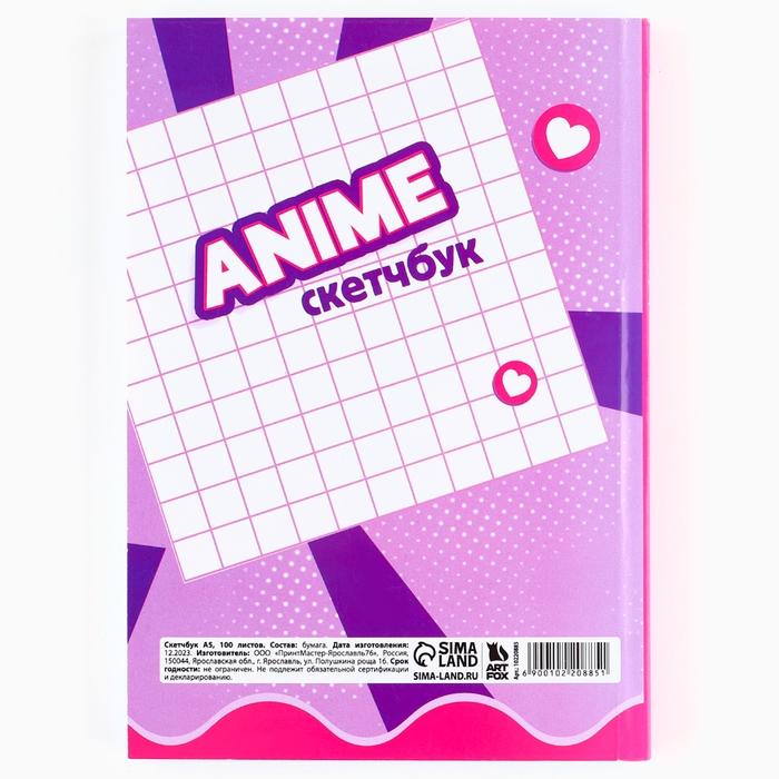 Скетчбук в мягкой обложке А5, 100 л. Бумага 100гр «Аниме»