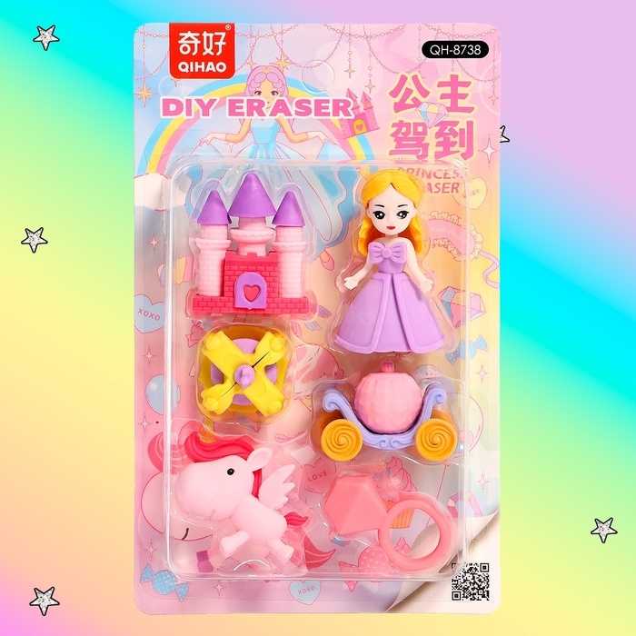 Игровой набор ластиков «Принцесса» - это интересное дополнение для игр с куклами и пупсами. В наборе 6 ярких ластиков, каждый из которых выполнен в виде атрибутов принцессы, что делает игру увлекательнее.