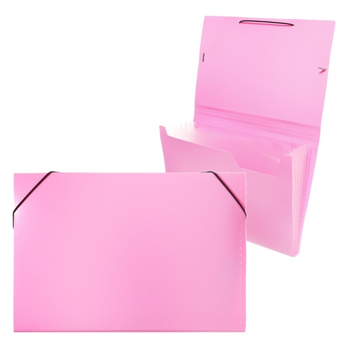 Папка картотека А4, Calligrata "Неон", 6 отделений, пластиковая, 700 мкм, фуксия, резинка в цвет