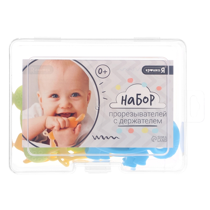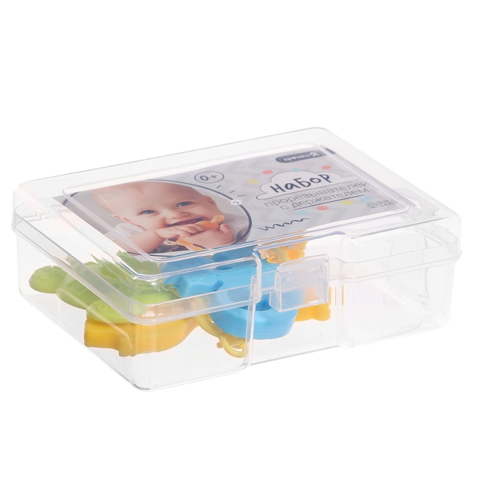 Набор прорезывателей для зубов «Зверята», с держателем, пластиковая цепочка, в контейнере, 3 шт.