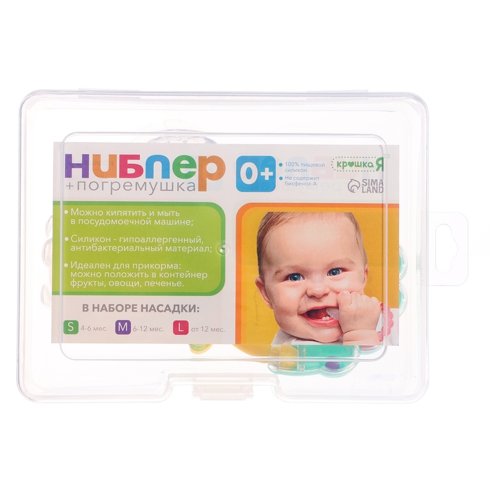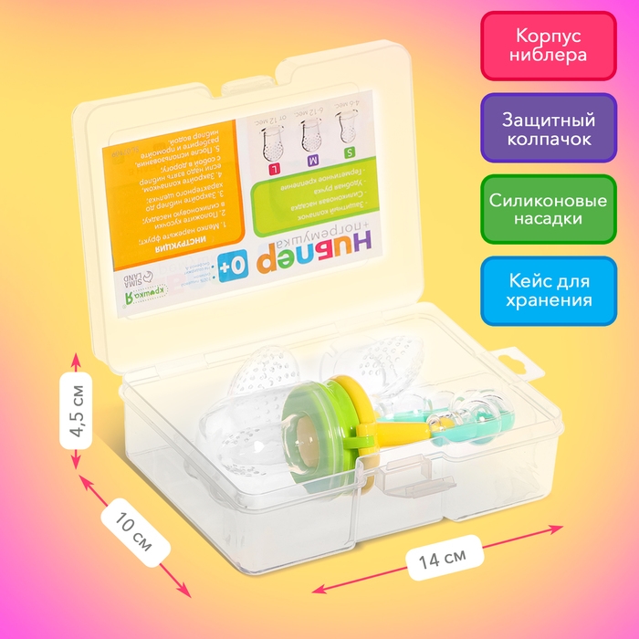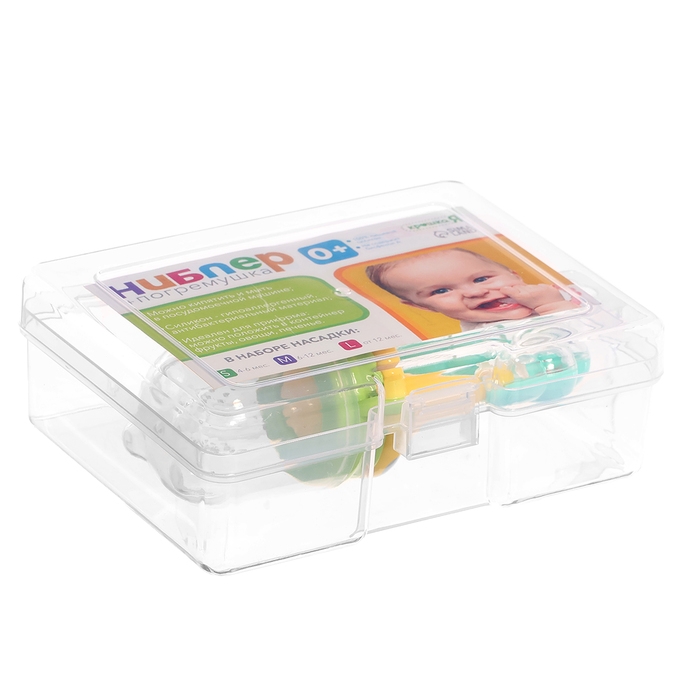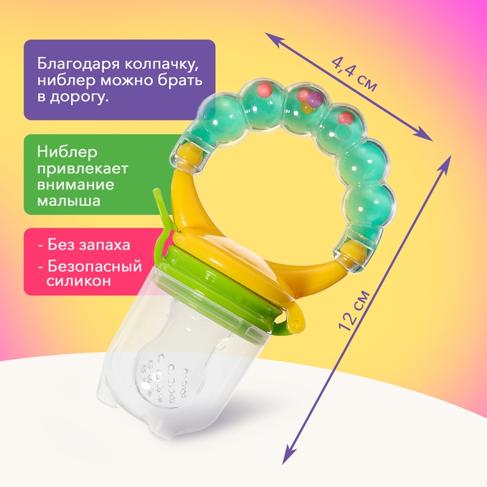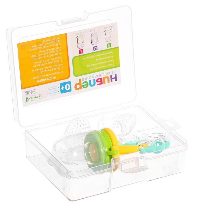Ниблер для прикорма, с погремушкой, пищевой силикон, в кейсе, 3 съёмных насадки