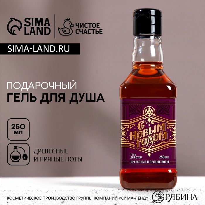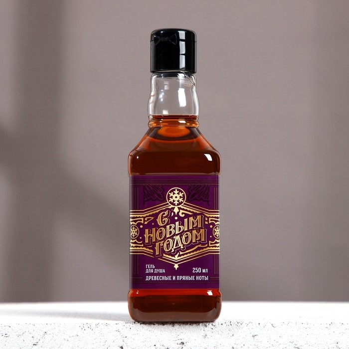 Гель для душа во флаконе виски, 250 мл, аромат древесный с пряными нотами, Новый Год
