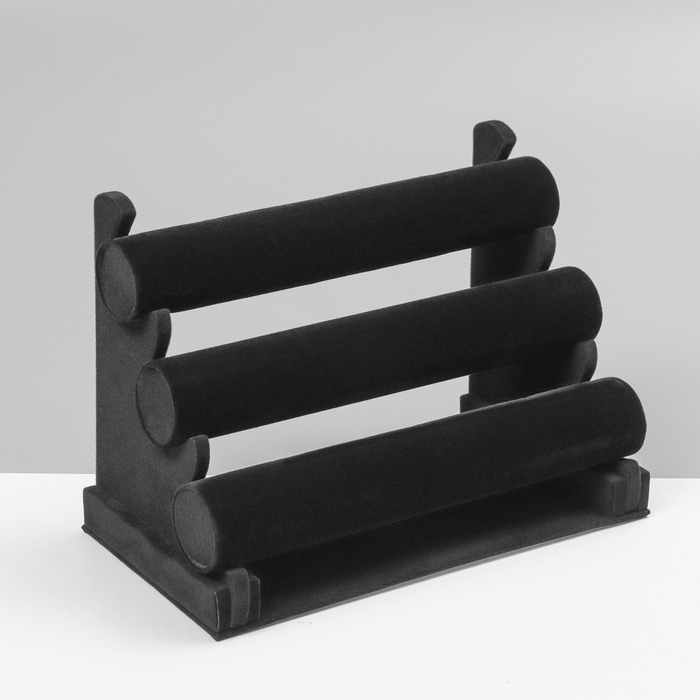 Подставка для часов, браслетов, флок, 3 ролика, 31×17,2×23 см, d=5 см, цвет чёрный
