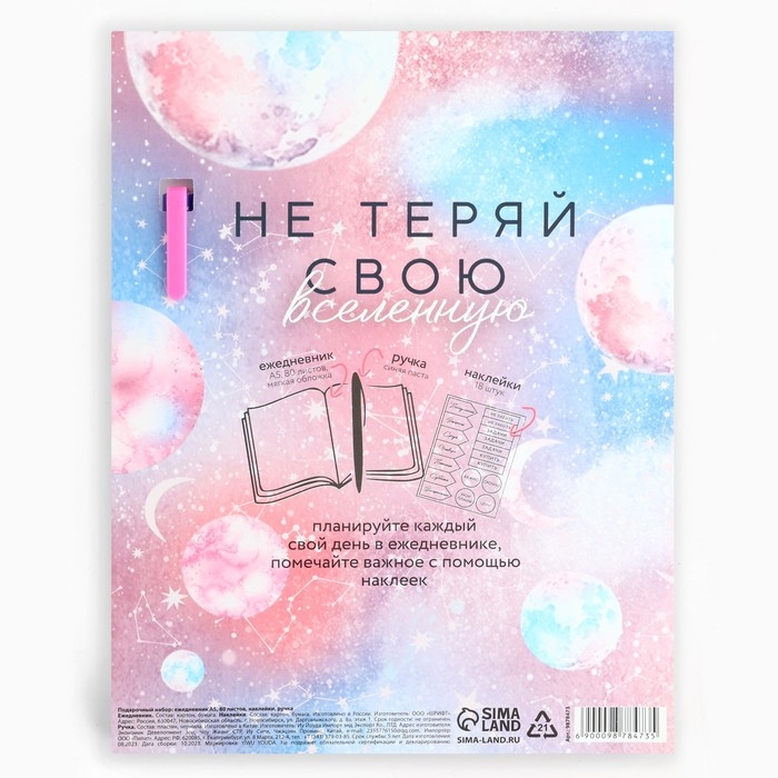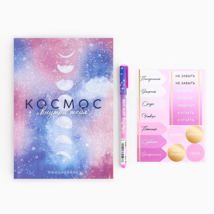 Подарочный набор ежедневник А5, 80 листов, наклейки и ручка «Космос внутри тебя»
