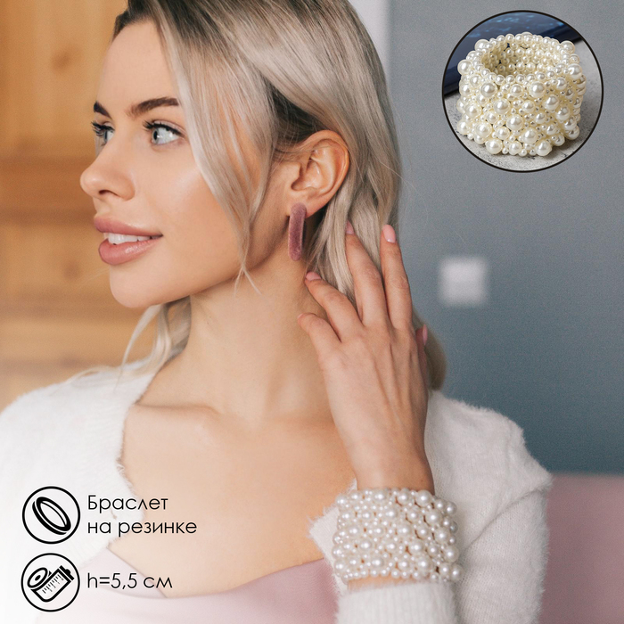 Браслет жемчуг «Зима» сплошной узор, цвет молочный, d=5 см