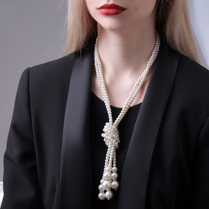 Бусы 2 нити «Зима» узел, цвет молочный, L=80, бусины №6 - 14