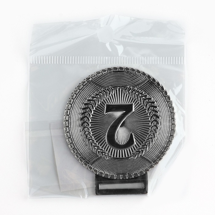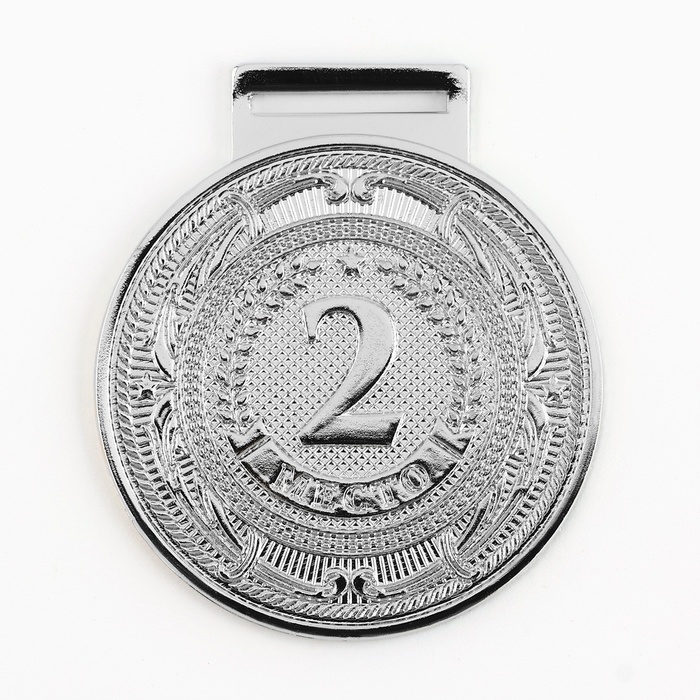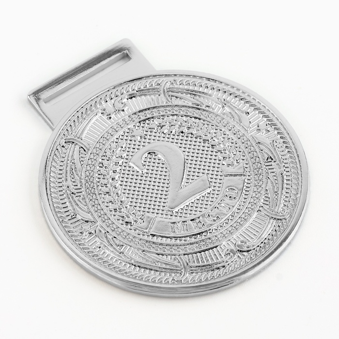 Медаль призовая 079, d= 6 см. 2 место. Цвет серебро. С лентой