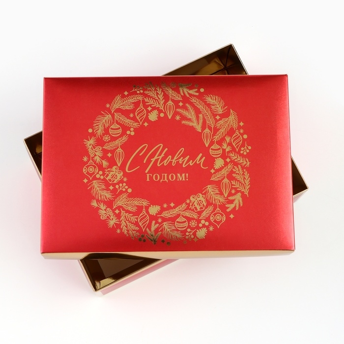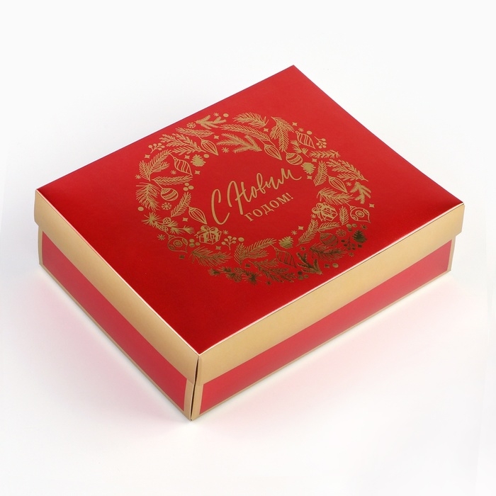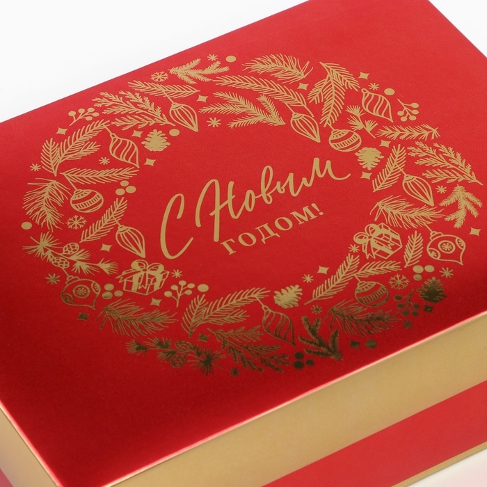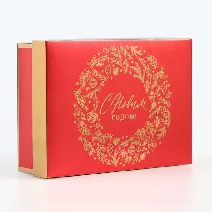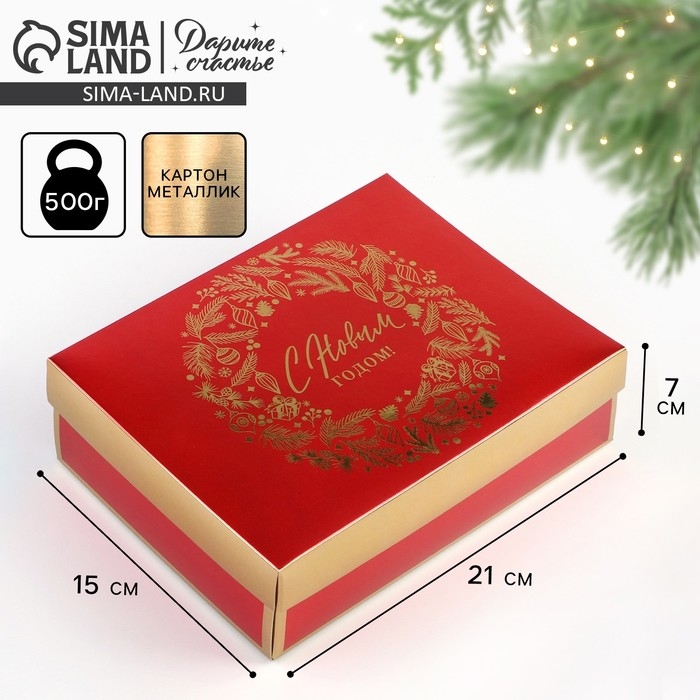Коробка подарочная новогодняя складная «Новогодний венок», 21 х 15 х 7 см, Новый год