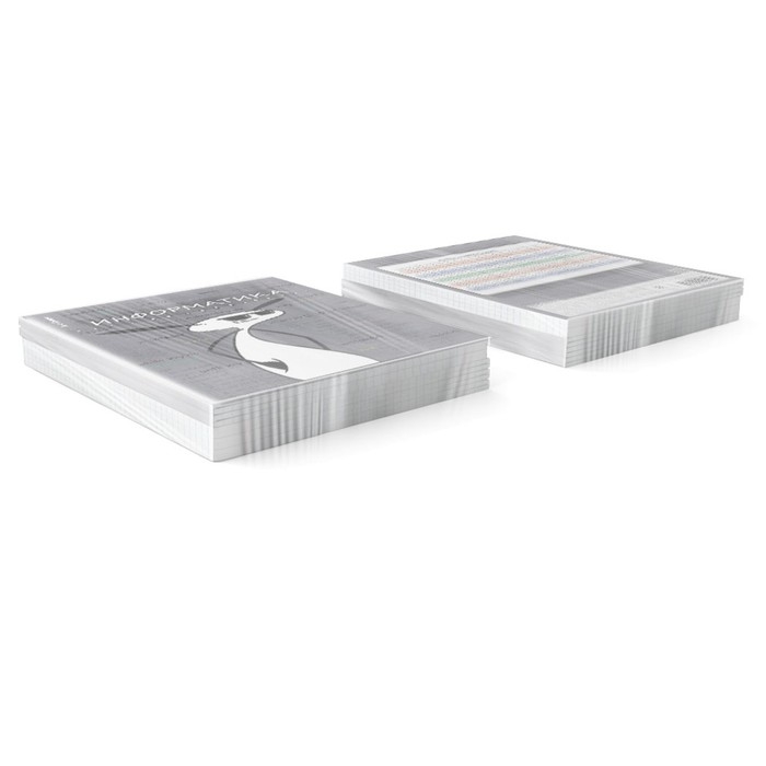 Тетрадь предметная формата А5+ (170x203 мм). Двойная обложка: внешняя выполнена из высококачественного износостойкого прозрачного пластика с фактурой «песок», внутренняя — из качественной мелованной бумаги. В блоке 48 листов в клетку с полями. Бумага офсетная плотностью 60 г/м2. Белизна бумаги - 100%. Цвет линовки - синий. Скругленные уголки обложки и блока. Тип скрепления - скоба. Имеет инфо-блок с кратким изложением школьной программы. Тетради упакованы в термоусадочную плёнку по 5 штук.