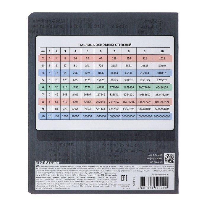 Тетрадь предметная ИНФОРМАТИКА, 48 листов в клетку, ErichKrause "Чубрик", пластиковая обложка, шелкография, блок офсет 100% белизна, инфо-блок