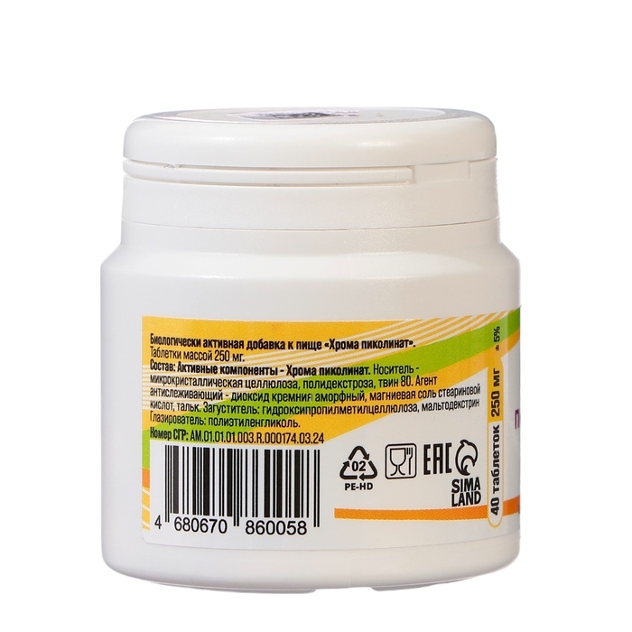 Биологически активная добавка к пище «Хрома пиколинат, 40 таблеток по 250 мг»
