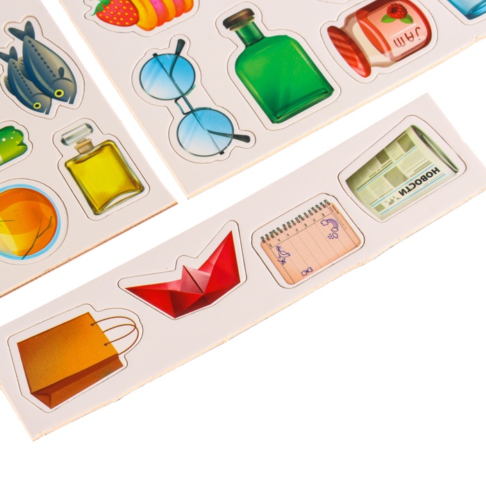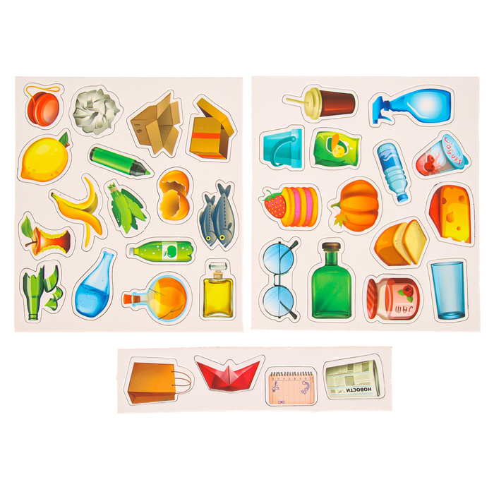 Расположите все фигурки перед ребёнком, попросите назвать каждый элемент, описать его. Затем пусть он рассортирует по контейнерам все фигурки.