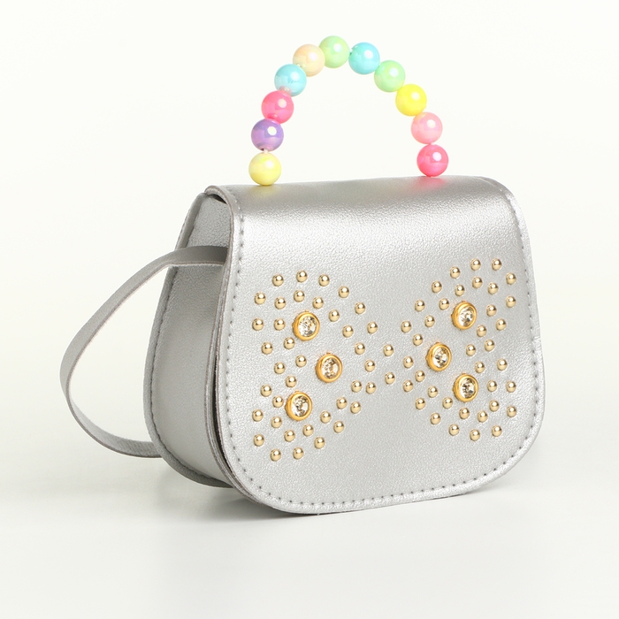 Сумка детская для девочки на клапане «Выбражулька», цвет серебряный