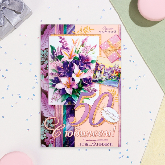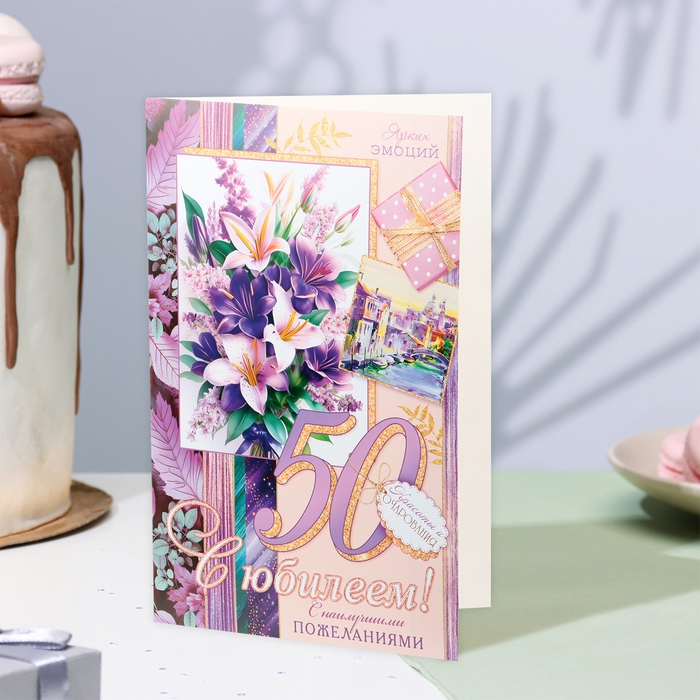 Открытка "С Юбилеем! 50" лилии, А4