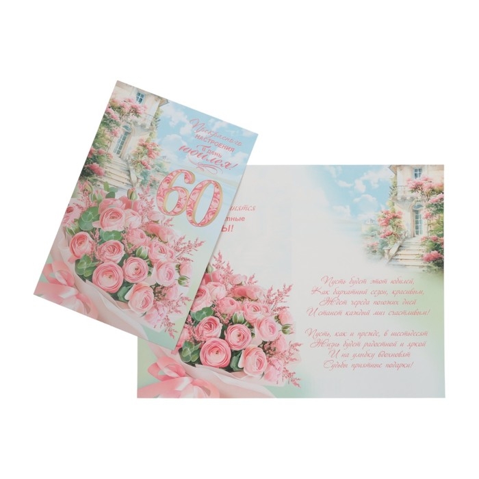 Открытка "Прекрасного настроения в день Юбилея! 60" цветы, А4