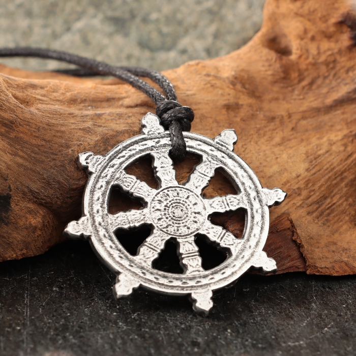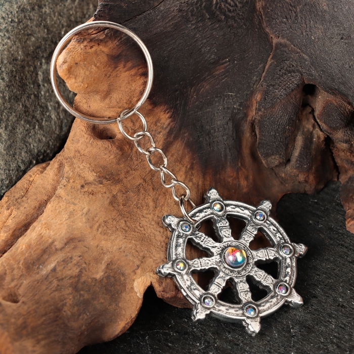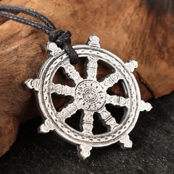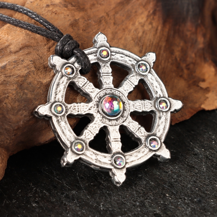 Амулет "Колесо Сансары" с камнем фианит, 35х35 мм, металлический