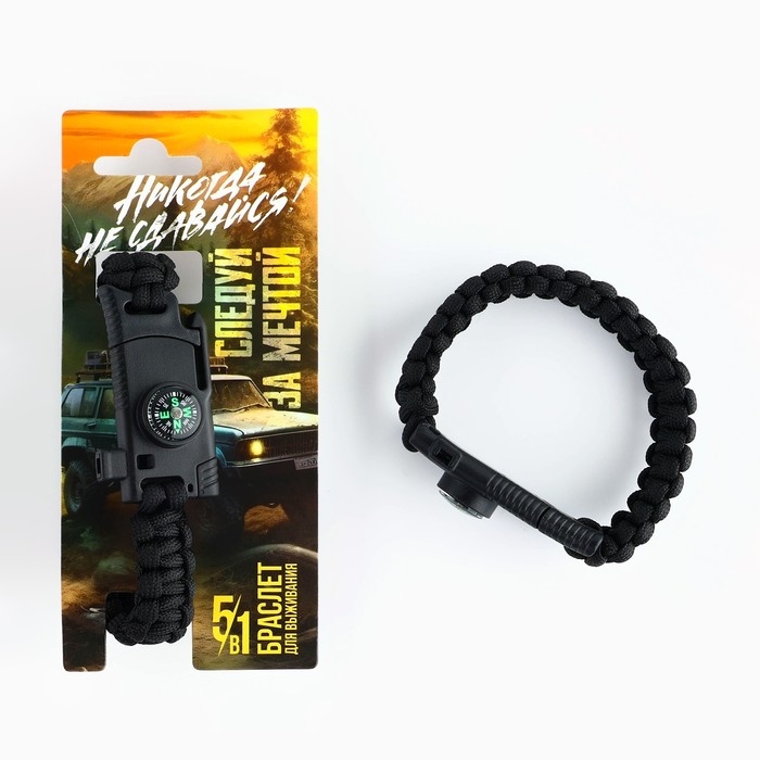 Браслет для выживания «Никогда не сдавайся», 26 х 2,5 см.