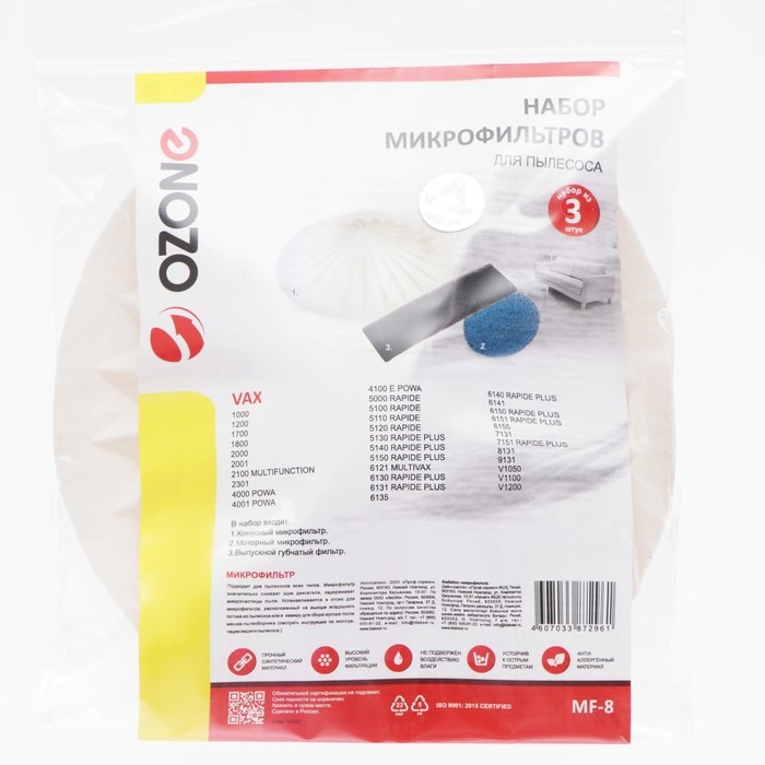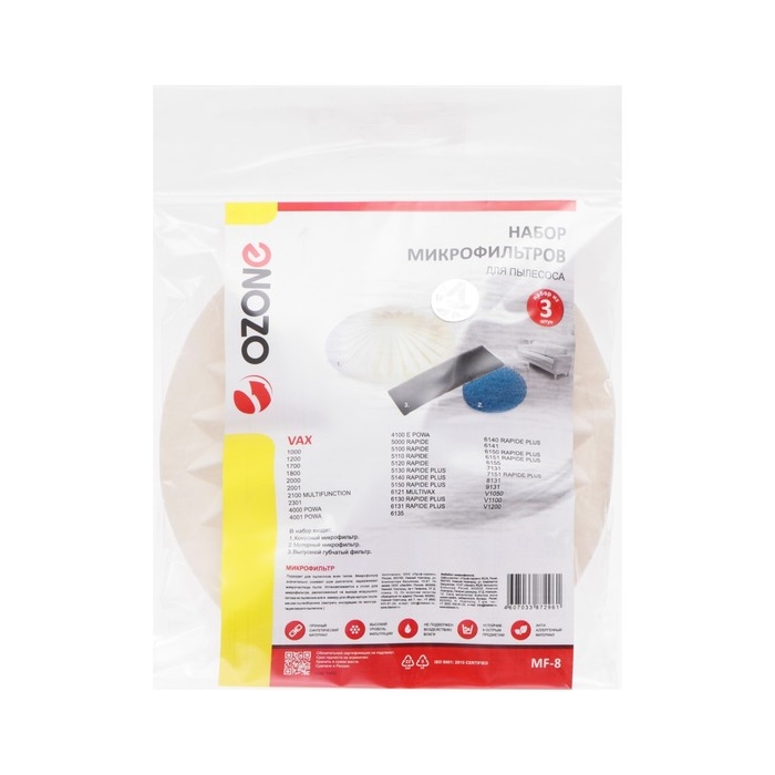 Набор синтетических фильтров MF-8 Ozone для пылесоса