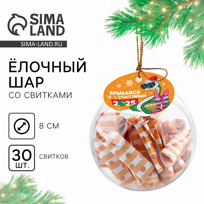 Новогодний шар ёлочный с пожеланиями «2025», на Новый год, 30 свитков, d = 8 см