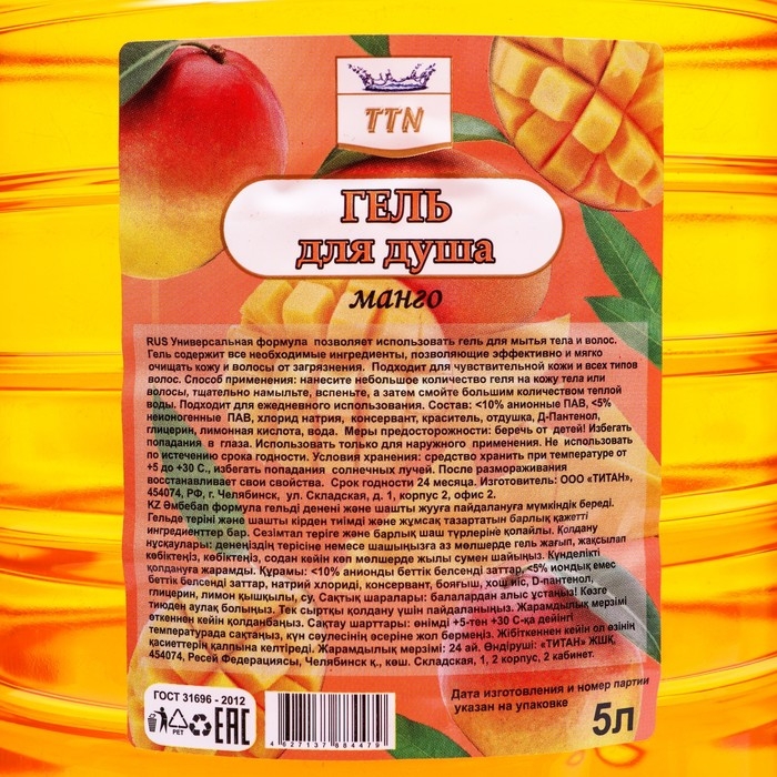 Погрузитесь в мир тропического блаженства с гелем для душа TITAN "Манго"! Ваша кожа будет благодарна вам за такой роскошный уход.