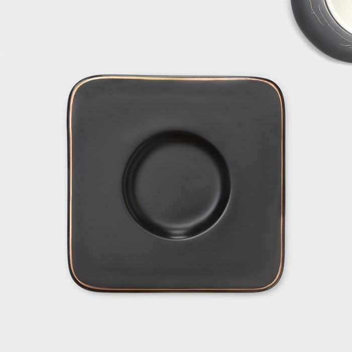 Набор чайный керамический Magistro Matt black, 4 предмета: чашка 210 мл, 2 шт, блюдце d=14 см, 2 шт