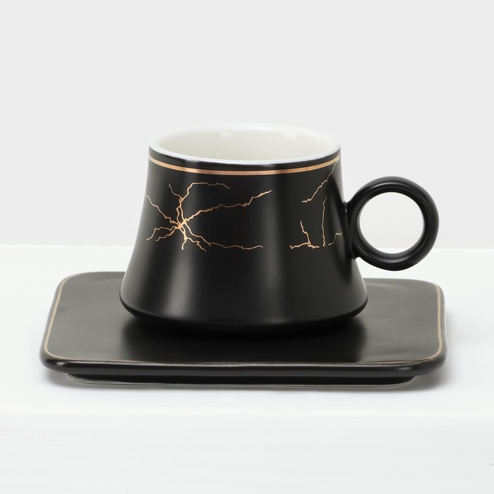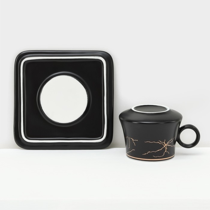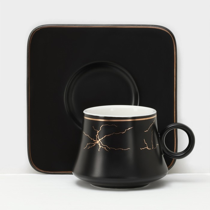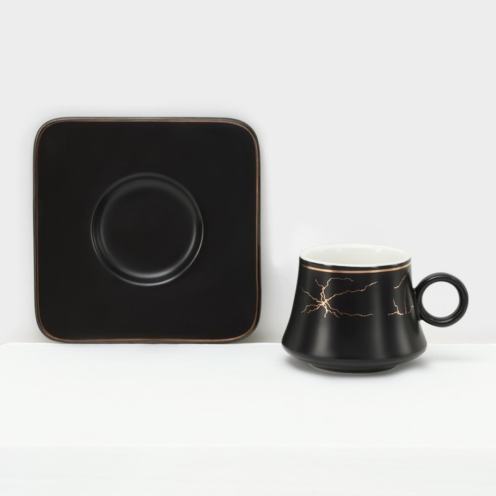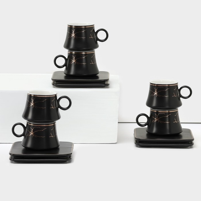 Набор керамический кофейный «Мейси», 12 предметов: 6 чашек 100 мл, 6 блюдец d=11 см, цвет чёрный