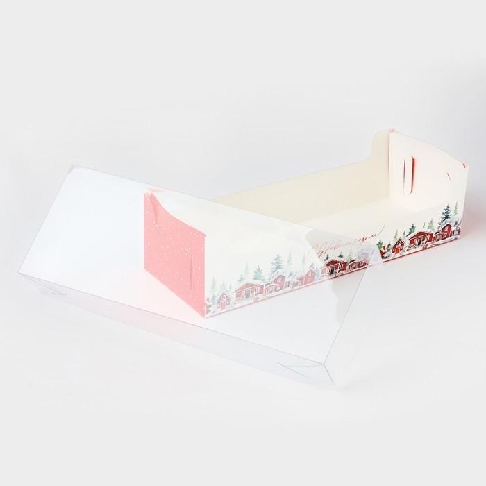 Коробка для кондитерских изделий с пластиковой крышкой «Сказка в городе», 30 х 8 х 11 см, Новый год