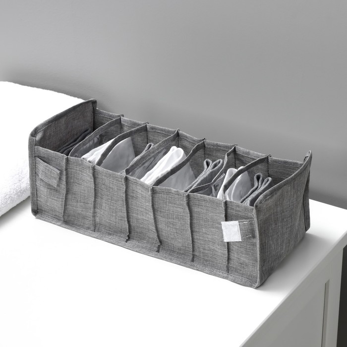 Органайзер для хранения белья Доляна «Нея», 7 ячеек, 34×30×8 см, цвет серый