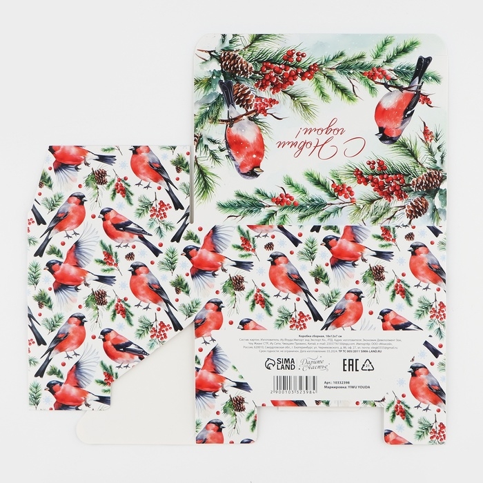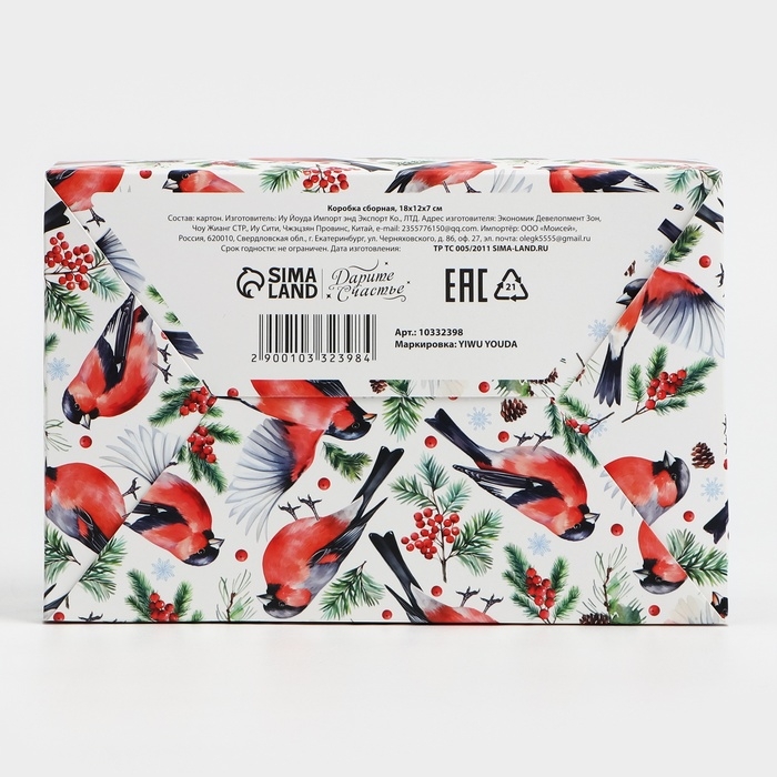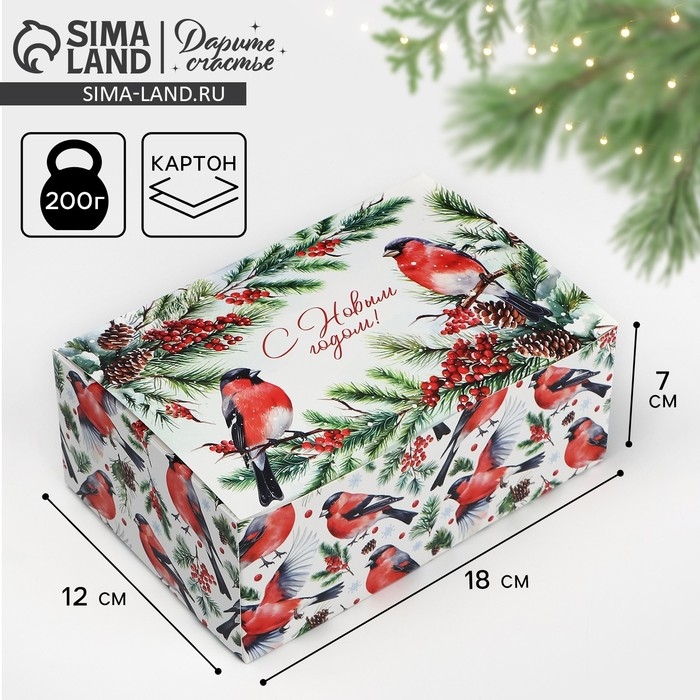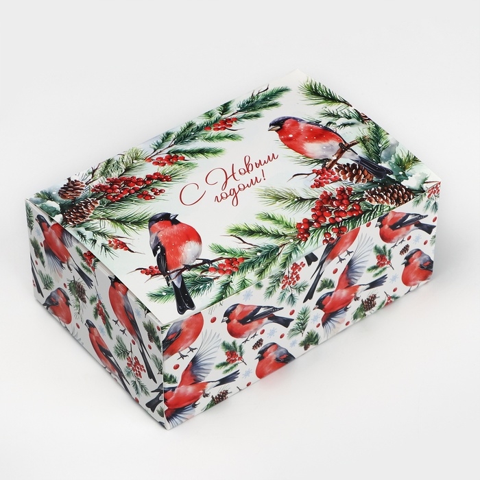 Коробка подарочная новогодняя складная «Снегири», 18 х 12 х 7 см, Новый год