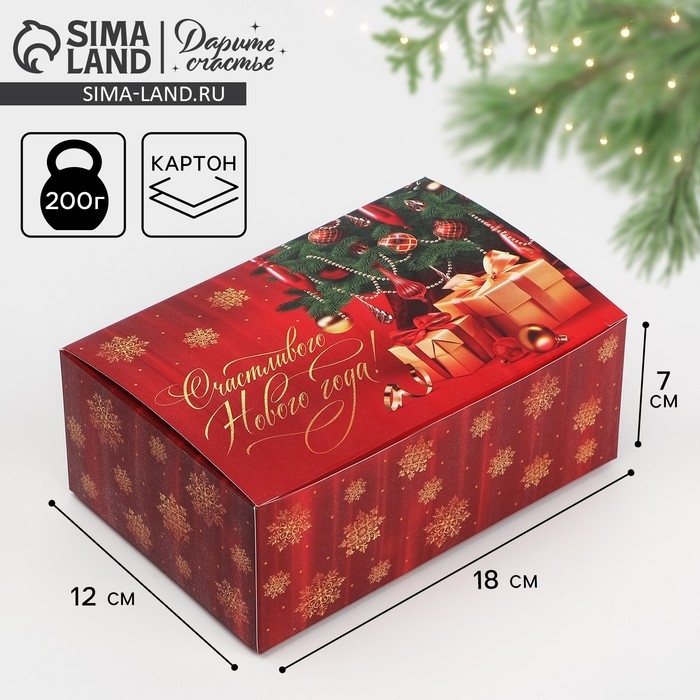 Коробка подарочная новогодняя складная «Счастливого Нового года », 18 х 12 х 7 см, Новый год