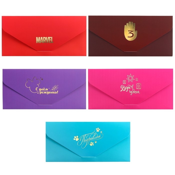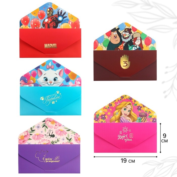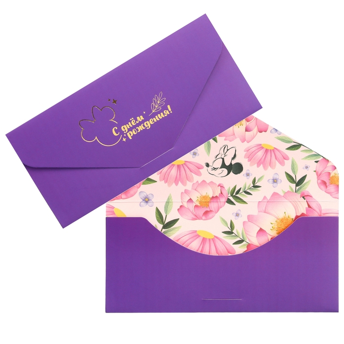 Конверт для денег подарочный. Набор, софт тач, тиснение, 19 х 9 см, Дисней