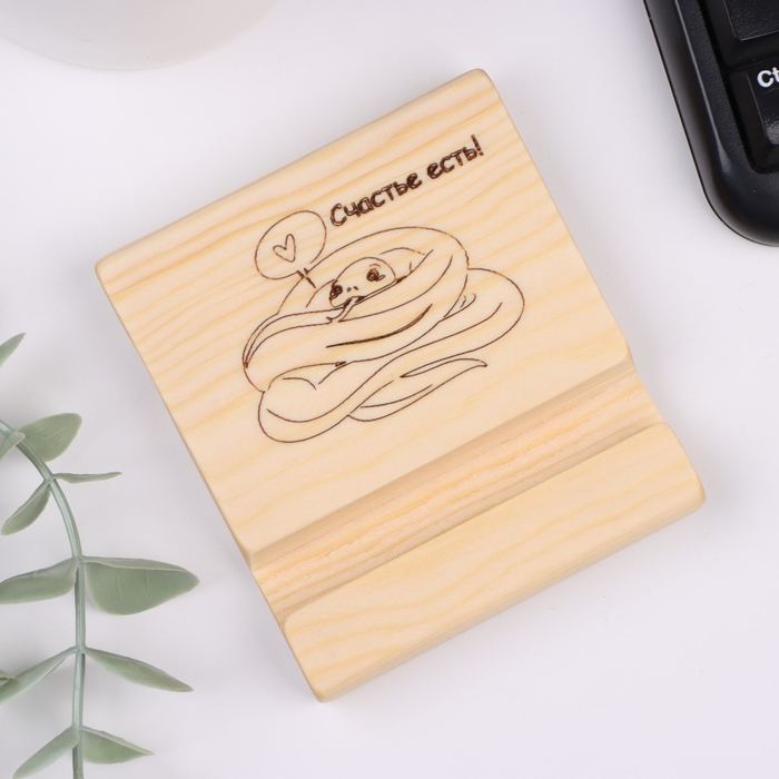 Новый год. Подставка с символом года под телефон "Счастье есть", 8х9х1,6 см, сосна