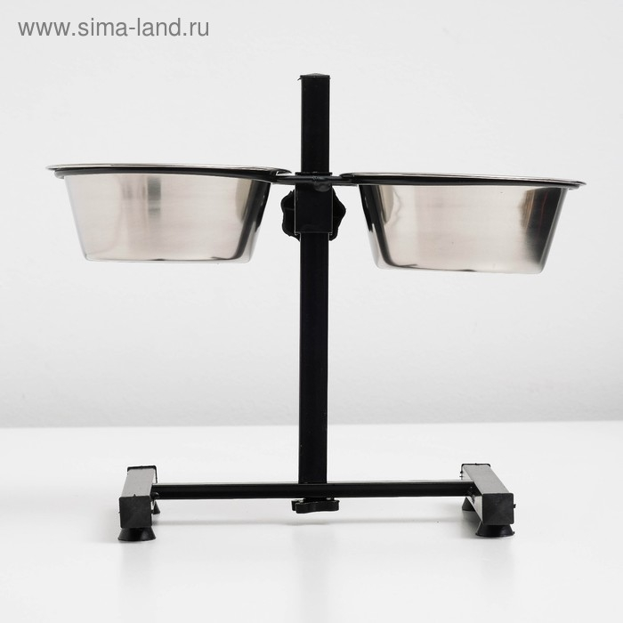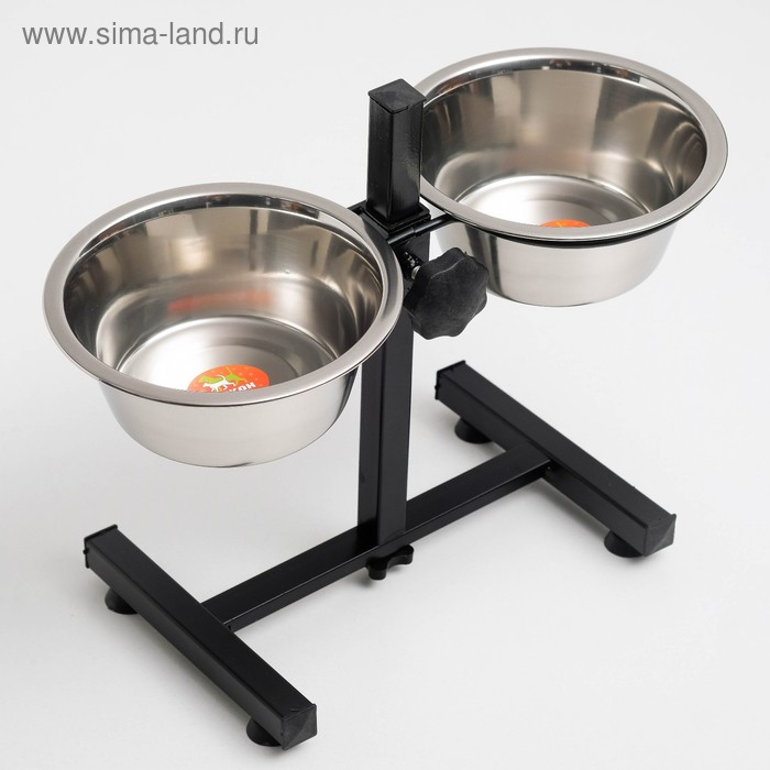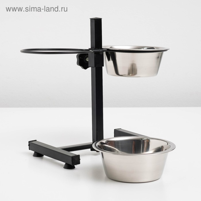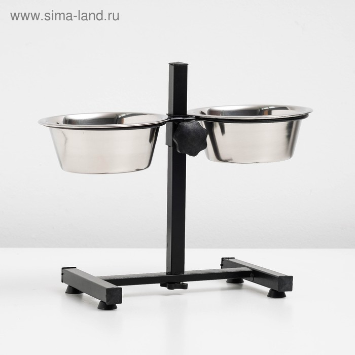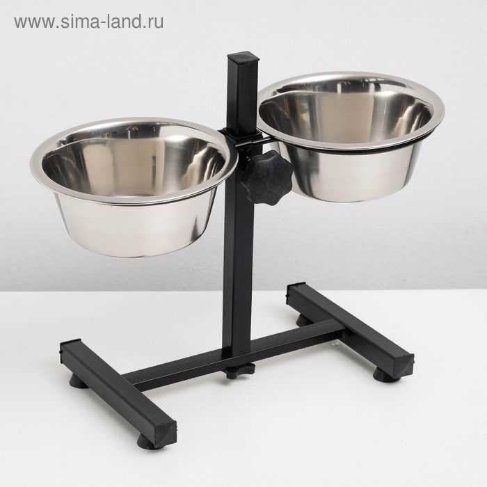 Подставка с мисками, 2 х 500 мл, высота 30 см, разборная, чёрная