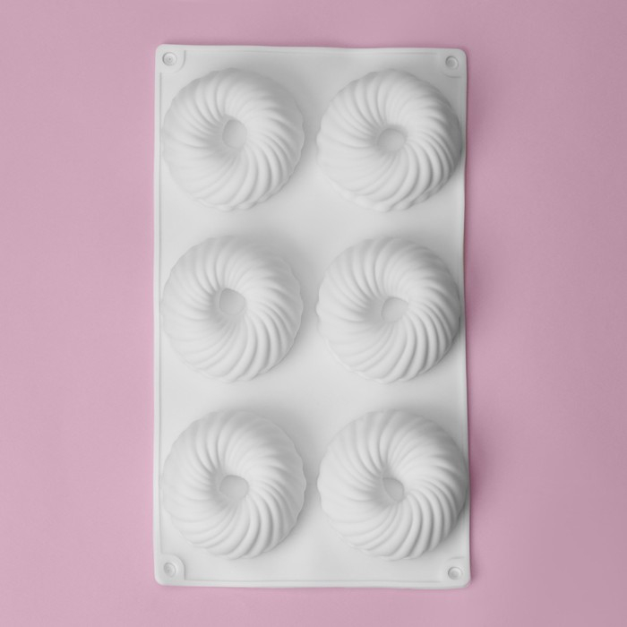 Форма для муссовых десертов и выпечки Доляна «Вихрь», 29,8×17,5×3 см, 6 ячеек (d=7,7 см), цвет МИКС
