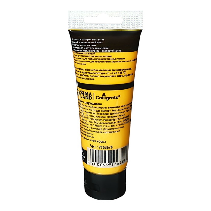 Краска акриловая матовая в тубе 75мл CALLIGRATA, КМ057, Желто-зеленая светлая, пантон 2290С