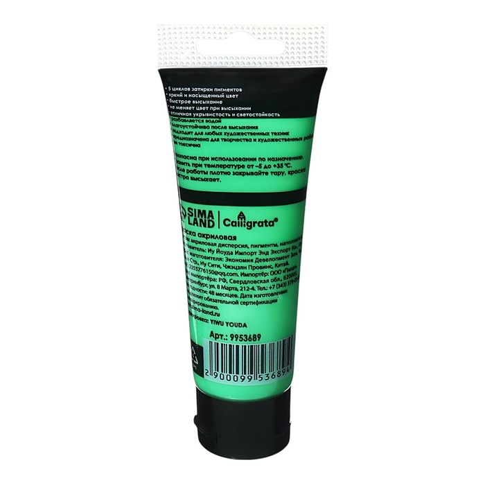 Краска акриловая матовая в тубе 75мл CALLIGRATA, КМ057, Желто-зеленая светлая, пантон 2290С