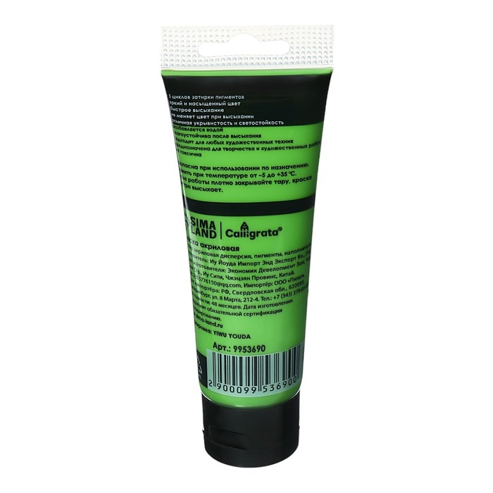 Краска акриловая матовая в тубе 75мл CALLIGRATA, КМ046, Желто-зеленый, пантон 7737С